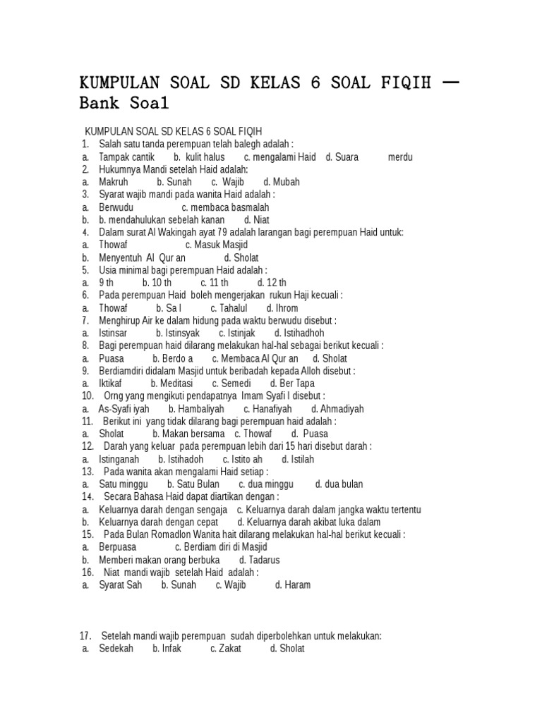 Soal Usbn Fikih Sd/Mi Kelas 6 - Lks Fikih Mi Kelas 6 Semester 1 Thawaf Shopee Indonesia : Anda bisa gunakan soal ini sebagai bahan latihan belajar menghadapi ulangan.